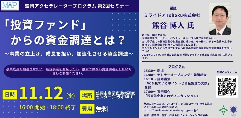盛岡広域に本社、支社、営業所又はこれらに類する事業拠点を有している成長事業の構想段階や発展途上にあるスタートアップを対象としています。